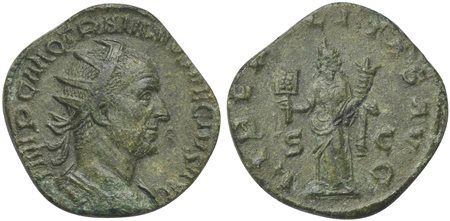 Trajan Decius (249-251), Dupondius, Rome, AD 250. AE (g 8,53; mm 25; h 12). IMP C M Q TRAIANVS DECIVS AVG, Radiate, draped and cuirassed bust r., Rv. LIBERALITAS AVGG, Liberalitas standing l., holding abacus and cornucopia, S - C.