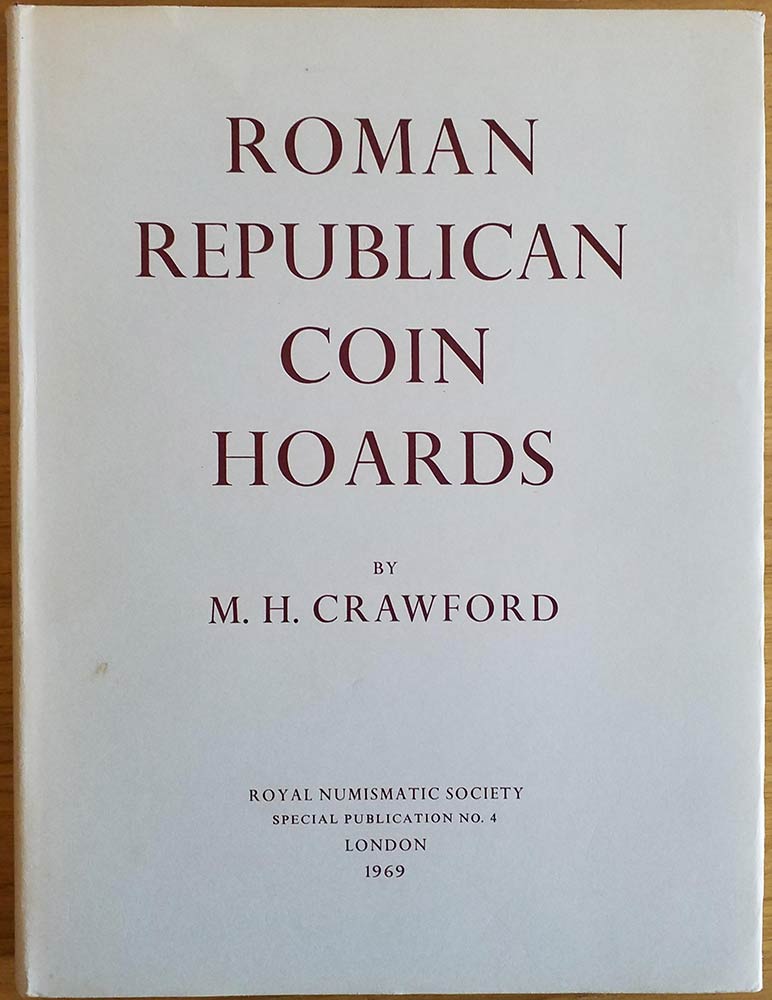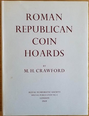 Crawford M.H. Roman Republican Coin Hoards. London 1969. Tela ed. con sovraccoperta, pp. 170, tavv. III in b/n. Ottimo stato