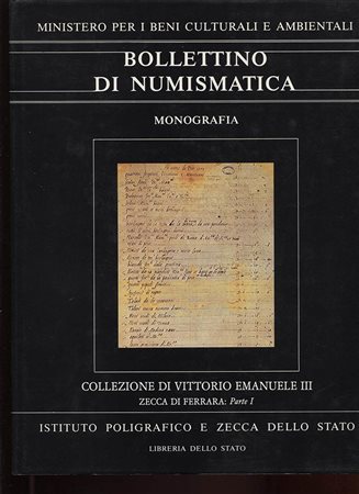 ERCOLANI COCCHI E. – La zecca di Ferrara. Parte I Etaà comunale ed estense. Collezione di Vittorio Emanuele III di Savoia. Roma, 1987. Pp. 216, tavv. E ill. nel testo a colori e b\n. ril. ed. Buono stato.