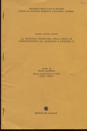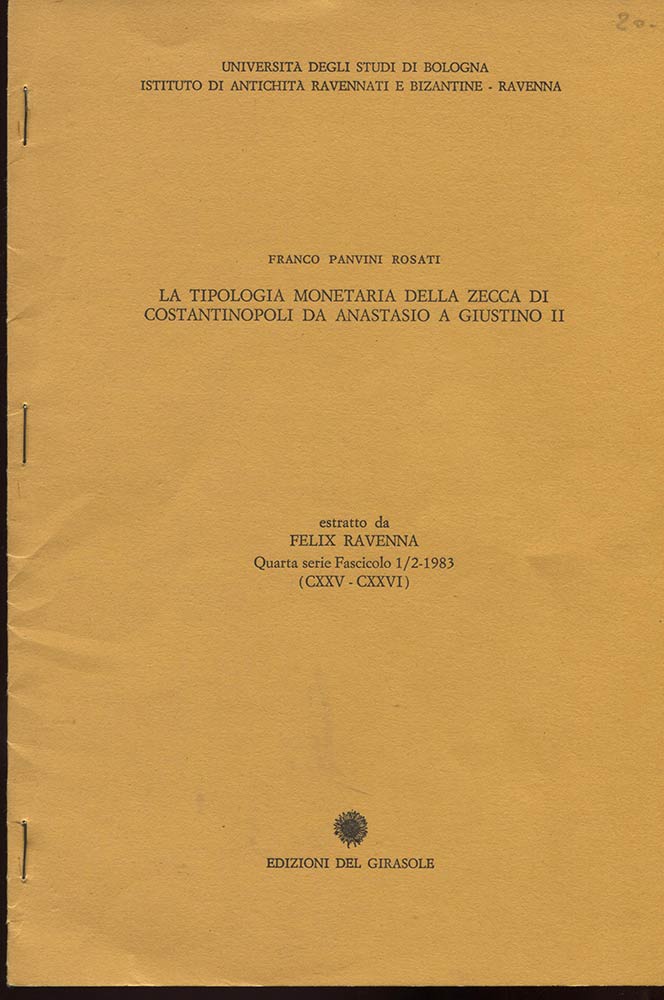 ROSATI PANVINI F. – La tipologia monetaria della zecca di Costantinopoli da Anastasio a Giustino II. Ravenna, 1983. Pp. 39 – 61, tavv. 7. Ril. ed. Buono stato.