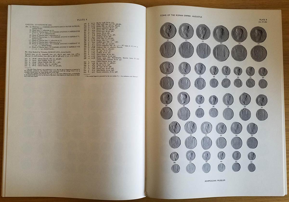Sutherland C.H.V. Kraay C.M. Catalogue of Coins of The Roman Empire in the Ashmolean Museum. Part I Augustus (c. 31 B.C. - A.D. 14) Oxford 1975. Tela ed. lotti 1507, tavv. 36 in b/n. Ottimo stato