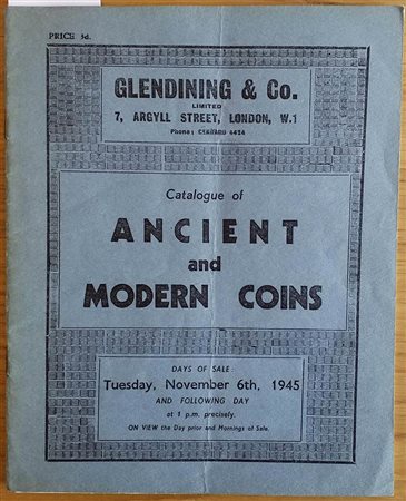 Glendining & Co. Catalogue of the Collection of English Coins Formed by the late P.C. Peek Esq. London 06 November 1945. Brossura ed. pp. 28, lotti 409. Alcune annotazioni a matita dei prezzi. Buono stato