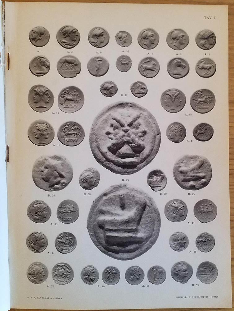 Lot 2503 | Santamaria P.& P. Collezioni del Conte Luigi Brunacci e di altri raccoglitori. Monete della Repubblica Romana. Monete Greche, dell' Impero Romano, Bizantine, di Zecche Italiane ed Estere. Roma 24 Febbraio 1958. Brossura ed. pp. 14