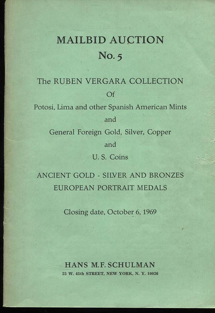 SCHULMAN H. M.F. – Mailbid auction n 5. The Ruben Vergara collection of Potosi, Lima and other Spanish American mints and general foreign gold, silver, copper and U.S. coins. Ancient gold, silver and bronzes european portraits me