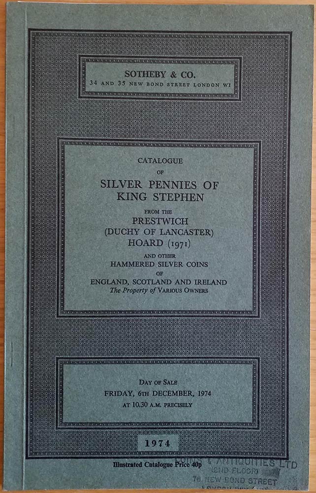 Sotheby & Co. Catalogue of Silver Pennies of King Stephen from the Prestwich (Duchy of Lancaster) Hoard (1971) and other Hammered Silver Coins of England, Scotland and Ireland. The Property of Various Owners. London 06 December 19