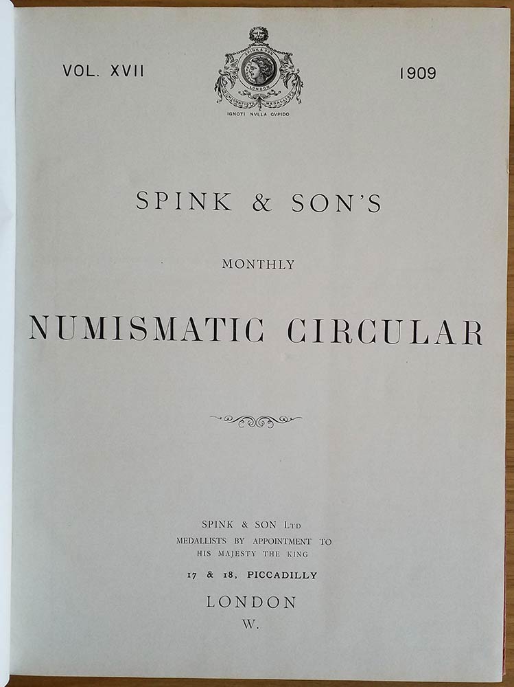 Lot 2582 | Spink & Son's Numismatic Circular Annata completa. 1909 Tutta Tela con titolo al dorso, ill. in b/n. Buono stato