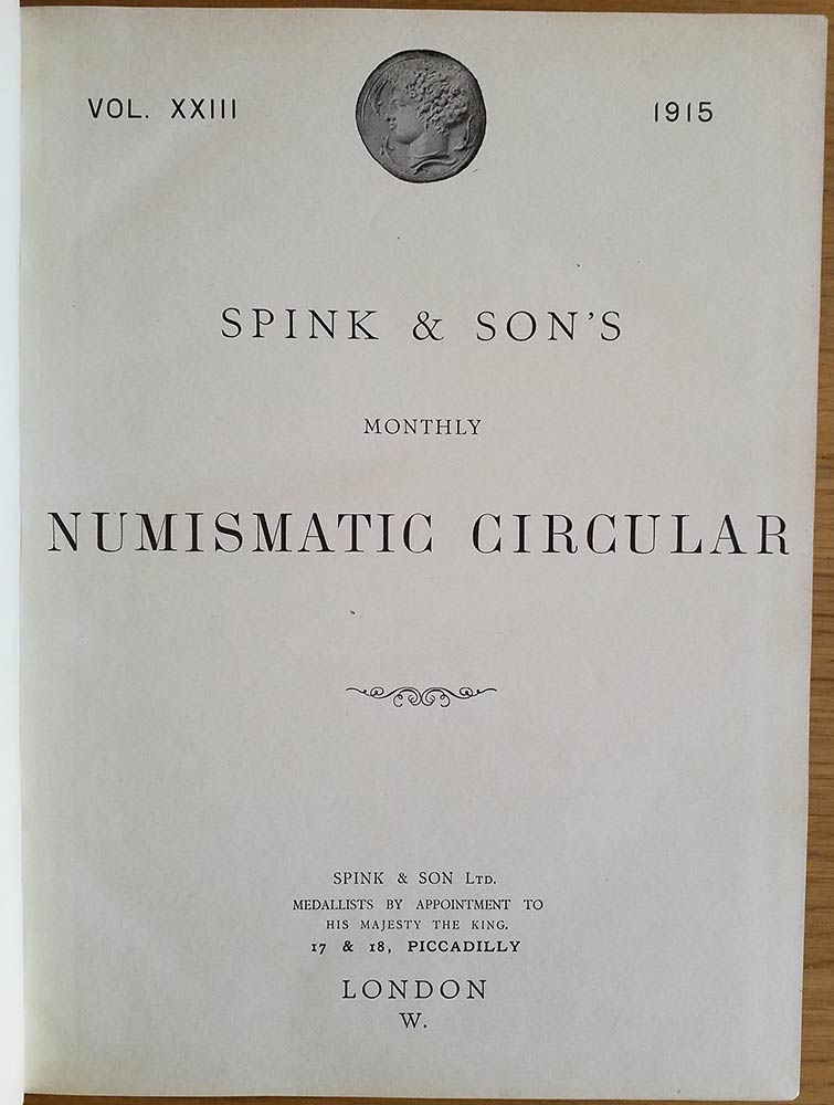 Spink & Son's Numismatic Circular Annata completa. 1915 Mezza Pelle con titolo al dorso, ill. in b/n. Buono stato