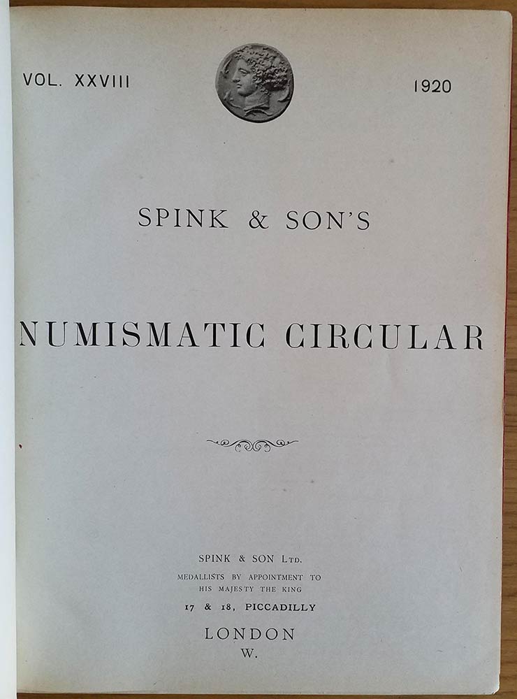 Spink & Son's Numismatic Circular Annata completa. 1920. Mezza Pelle con titolo al dorso, ill. in b/n. Buono stato