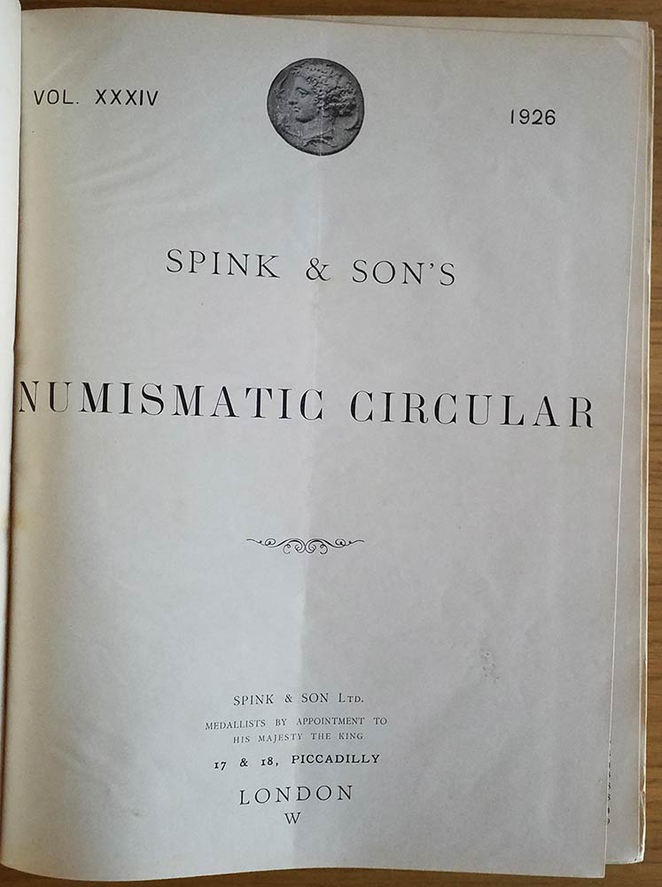 Spink & Son's Numismatic Circular Annata completa. 1926. Tutta Tela con titolo al dorso, ill. in b/n. Buono stato