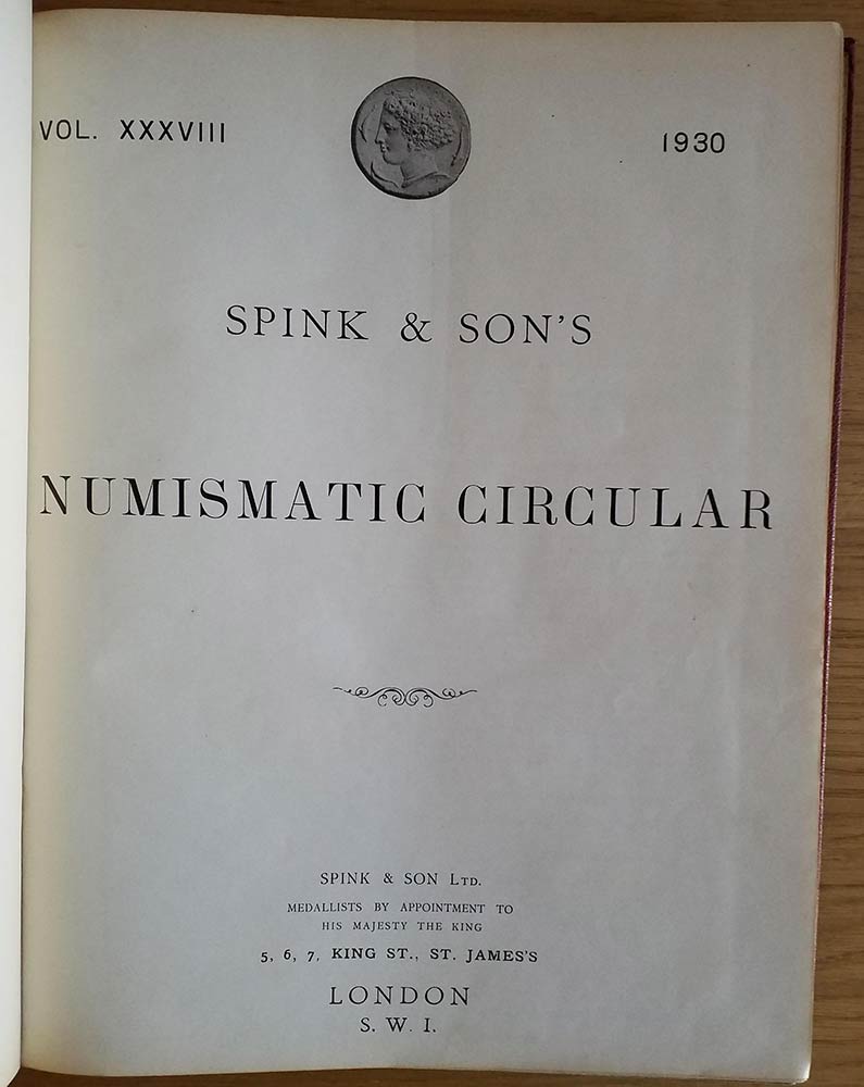 Spink & Son's Numismatic Circular Annata completa. 1930 Mezza Pelle con titolo al dorso, ill. in b/n. Buono stato