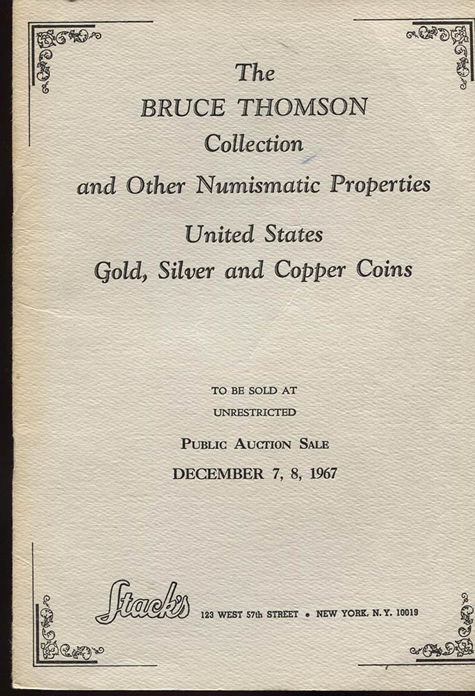 STACKS. – The Bruce Thomson collection and other numismatic properties. United States gold, silver and copper coins. New York, 7 – December, 1967. Pp.40, nn. 2001 - 2838, tavv. 4. Ril ed. lista prezzi Agg. buono stato.