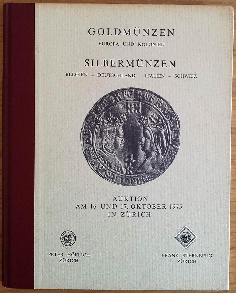 Sternberg F. Hoflich P. Auktion (IV) Goldmunzen Europa und Kolonien Silbermunzen Belgien, Deutschland, Italien, Schweiz. Zurich 17 Oktober 1975. Cartonato ed. pp. 71, lotti 934, tavv. XXXII in b/n. Buono stato