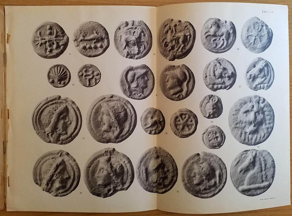 Ratto R. Listino X monete Greche I Fascicolo Assi Italici. Monete Iberiche e Galliche. Monete Greche dell' Italia Continentale, dall' Etruria alla Zecca di Taranto. Milano 1933. Brossura ed. pp. 16, lotti 545, tavv. VIII in b/n. Tavv. Staccate. Buono stato