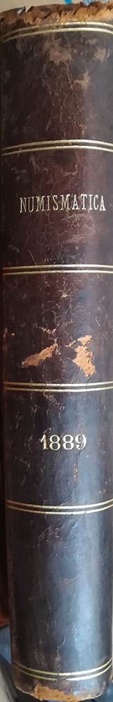 AA.VV. Rivista Italiana di Numismatica 1889 - MULAZZANI Giovanni, studii economici sulle monete di Milano - GNECCHI Ercole, Documenti inediti della zecca di Correggio - RUGGERO Giuseppe, Annotazioni Numismatiche Genovesi XIII - ROSSI Umberto, La zecca di Tresana - COMANDINI Alfredo, Medaglie Italiane del 1888 - POGGI Cencio, La medaglia dei dottori di collegio di Como più appendice A e B - KENNER Federico, Il medaglione romano - LUPPI C., Vite di illustri Numismatici Italiani - SAMBON Arturo, Alcune monete inedite di Magna Grecia Lucania Australis - GNECCHI Francesco, Appunti di Numismatica Romana - MUONI Damiano, Monetazione Carolingia Italiana - RUGGERO Giuseppe, Annotazioni Numismatiche Genovesi - TAGLIABUE Emilio, Un bando contro le monete Trivulziane - COMANDINI Alfredo, Medaglie Italiane del 1888 - KENNER Federico, Il Medaglione Romano continuazione e fine - LUPPI C. , Vite di illustri Numismatici Italiani - MARK Andrea, Peso e titolo degli antoniniani di Claudio Gotico - MULAZZANI Giovanni, Compendio storico di quindici Zecche italiane - RUGGERO Giuseppe, Annotazioni Numismatiche Genovesi XVII - CASTELLANI Giuseppe, La Zecca di Fano nel 1797 - AMBROSOLI Solone, Una medaglia di Antonio Abondio (con tavola) ecc - GNECCHI Ercole, una medaglia commemorativa Milanese - MOTTA Emilio, Gerolamo Alberti maestro di zecca in Ferrara - Parma e Milano - LUPPI C. , Vite di illustri Numismatici Italiani III Vincenzo Bellini. Annata completa. Pp. 428, tavv. 5. Rilegatura in mezza pelle marrone e scritte e fregi in oro al dorso