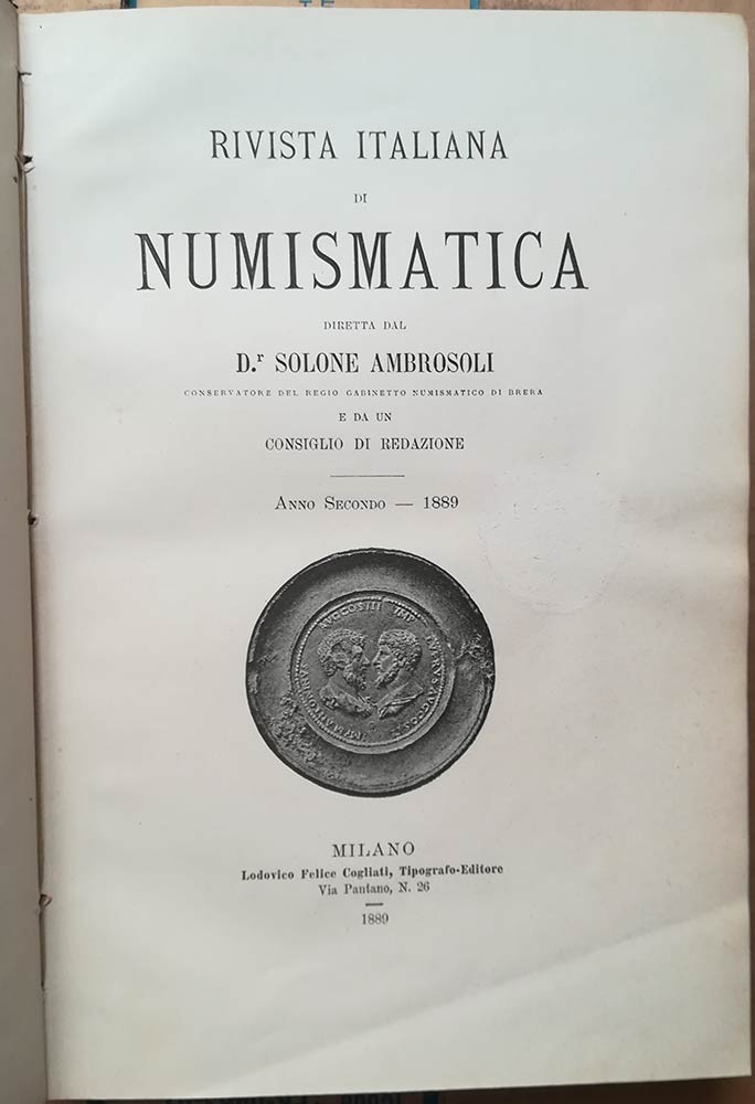 AA.VV. Rivista Italiana di Numismatica 1889 - MULAZZANI Giovanni, studii economici sulle monete di Milano - GNECCHI Ercole, Documenti inediti della zecca di Correggio - RUGGERO Giuseppe, Annotazioni Numismatiche Genovesi XIII - RO