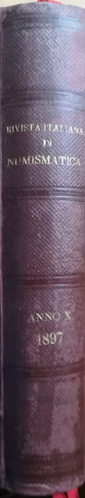 AA.VV. Rivista Italiana di Numismatica 1897 - GNECCHI Francesco, appunti di numismatica romana XLI - gli ultimi dupondii - GNECCHI Ercole, il ripostiglio di Cavriana - CIANI Giorgio, Mirandola monete inedite o corrette - VITALINI G., ducatone inedito di Alberico I Cybo principe di Massa - FRATI Luigi, sull'erronea attribuzione al Francia delle monete gettate al popolo nel solenne ingresso in Bologna di Giulio II per la cacciata di Gio. II Bentivoglio - VITALINI G., un nuovo grosso inedito di Gio. Antonio Falletti conte di Benevello - KUNZ Carlo, della zecca di Crema - KUNZ Carlo, gli zecchini di stampo veneto della zecca di Trèvoux - KUNZ Carlo, di un piccolo ripostiglio di monete - KUNZ Carlo, sesino di Messerano contraffatto allo stampo veneziano - KUNZ Carlo, di qualche moneta ossidionale - KUNZ Carlo, illustrazione di una moneta inedita di Fabriano - lettera idi A.R. Caucich - KUNZ Carlo, ancora una moneta di Fabriano - lettera idi A.R. Caucich - KUNZ Carlo, Tavole - GNECCHI Francesco, appunti di numismatica romana XLIV sulle restituzioni - AMBROSOLI Solone, lo zecchino di Porcia - AGOSTINI A., il privilegio di zecca accordato dall'imperatore Massimiliano II a Ferrante Gonzaga - RICCI Serafino, contributi alla stotia del ripostiglio consolare di palazzo Canavese - KUNZ Carlo, il museo Bottacin annesso alla civica biblioteca e museo di Padova - GABRICI Ettore, la cronologia delle monete di Nerone - RIZZOLI Luigi, nuovo contributo alla numismatica padovana - GNECCHI Francesco, numismatica e medaglistica - MALAGUZZI Francesco, la zecca di Bologna - CIANI Giorgio, un ripostiglio di monete del secolo XIII - RUGGERO Giuseppe, annotazioni numismatiche italiane III - Dezana - Modena od Urbino? - Correggio? - AMBROSOLI Solone, il ripostiglio di San Martino del Pizzolano. Annata completa. Pp. 560, tavv. 6. Rilegatura in mezza tela marrone e scritte e fregi in oro al dorso