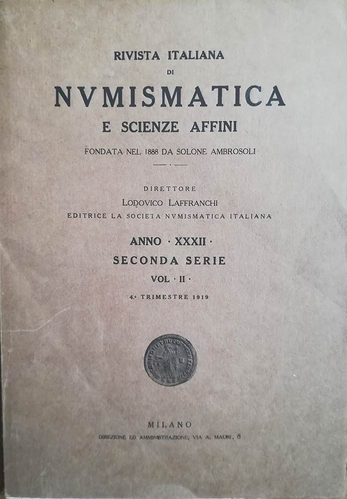 AA.VV. Rivista Italiana di Numismatica 1919 fascicolo 4 - BONAZZI Pompeo, Il ripostiglio di Mornico Losana - POMA Cesare, Il cardinale Lamarmora e le zecche di Crevacuore e Masserano - JOHNSON Stefano Carlo, Le rivendicazioni ital