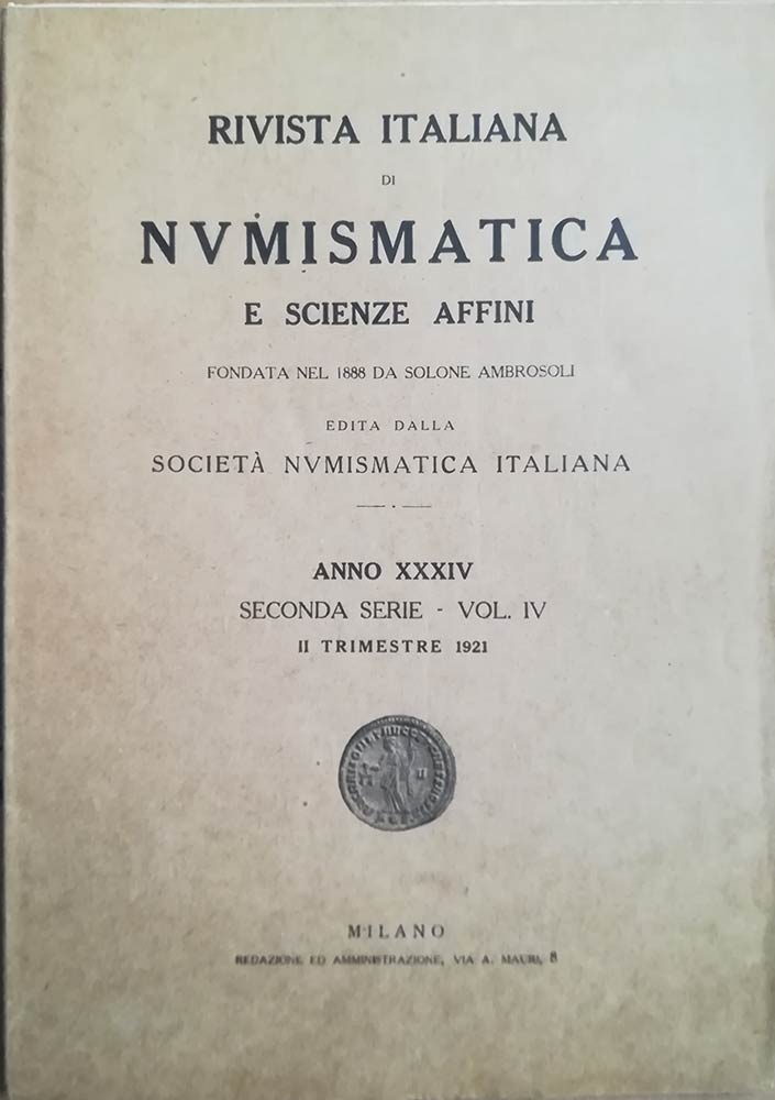 AA.VV. Rivista Italiana di Numismatica 1921 fascicolo 2 - ALY, le prime monete e i primi "aspri" dell'Impero Ottomano - MAJER G., le tessere veneziane dell'olio - GRILLO Guglielmo, una nuova moneta della zecca di Solferino - memor