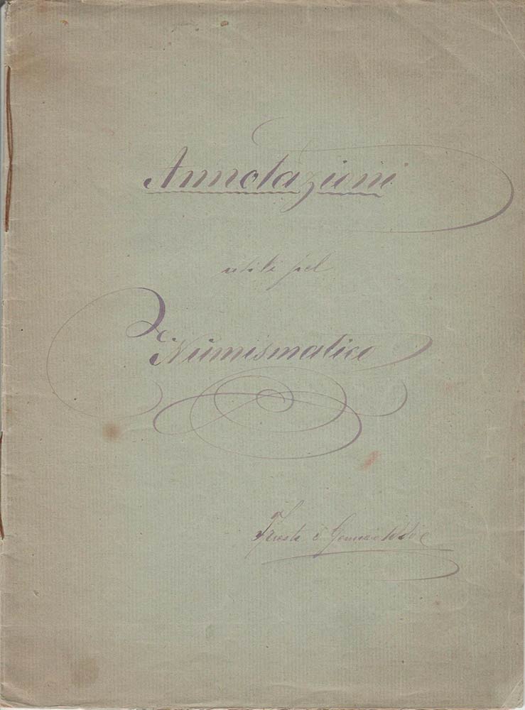 Lot 2693 | ANONIMO. Annotazioni utili pel Numismatico. Trieste, 1880 Manoscritto, pp. 14, pl. 2 o.t. UNICO