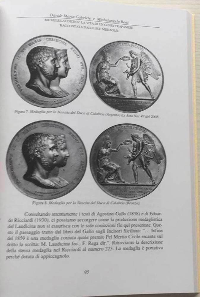 Associazione Culturale Italia Numismatica Quaderno di studi VIII Editrice Diana 2013. Brossura ed. pp. 188, ill. in b/n. INDICE Simonluca Perfetto, Prerogative degli officia nella Regia Zecca della moneta della Città di Napoli e cronologia analitica degli ufficiali (1546-1584) [3-46] Alberto Trivero Rivera, La fede di credito delle banche napoletane [47-70] Simone Perotti, Notizie storico numismatiche su alcune medaglie celebrative della quadruplice alleanza e la salita al trono di Sicilia di Carlo VI [71-82] Davide Maria Gabriele e Michelangelo Bonì, Michele Laudicina: la vita di un genio trapanese raccontata dalle sue medaglie [83-98] Simone Ascenzi, Medaglie commemorative di visita alla Zecca: un viaggio virtuale tra le principali Zecche dell'Italia pre- e post-unitaria [99-126] Vittorio Mancini, Il medagliere di Campobasso. La storia dei traforatori dell'acciaio e delle loro botteghe raccontata attraverso le medaglie [127-160] Paolo Gabriele, Le apparizioni, i miracoli, i pellegrinaggi e la speranza a Castelpetroso [161-174] Francesco di Rauso (a cura di), Le medaglie del 1738 per le nozze di Carlo di Borbone [175-188]