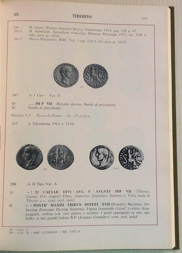 BANTI A., SIMONETTI L., Corpus Nummorum Romanorum Vol. IX. Tiberio. Banti-Simonetti, Firenze 1976. Tela ed. pp. 318, 1170 ill. In b/n . Ottimo stato