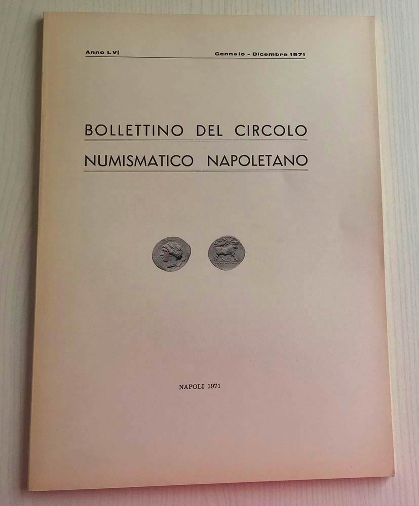 Bollettino del Circolo Numismatico Napoletano Anno LVI Gennaio-Dicembre 1971. Napoli 1971. Brossura ed. pp. 62 ill. in b/n, tavv. II in b/n. Dall' Indice : G. Bovi Il Tornese Napoletano, G. Bovi Una Moneta di Murat, R. Gaudioso I