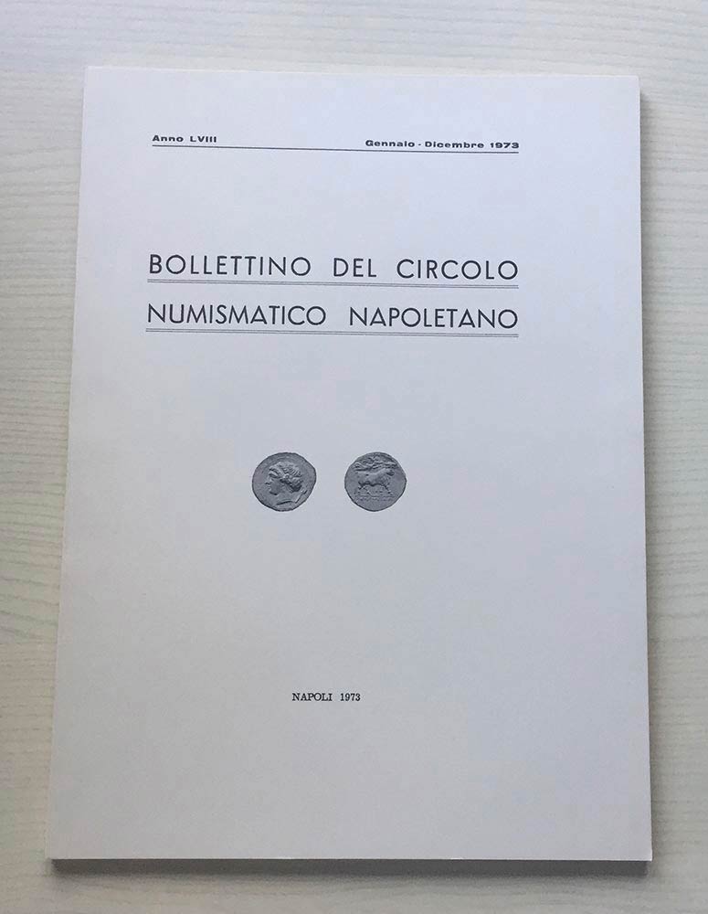 Bollettino del Circolo Numismatico Napoletano. Anno LVIII, Napoli, Gennaio-Dicembre 1973. Copertina flessibile, 98pp., foto B/N, 8 articoli. Ottime condizioni Indice: G. Bovi - Il rame di Ferdinando IV (1796-1798) G. Bovi - Le mon