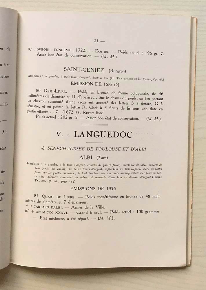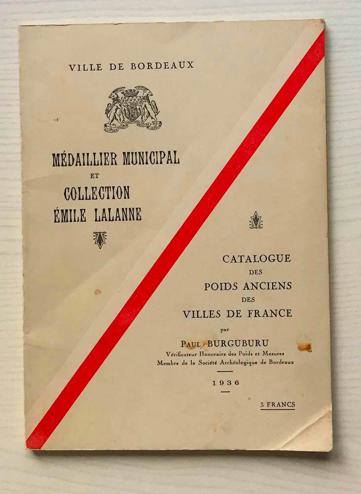 Burguburu P. Catalogue des Poids Anciens du Medaillier Municipal et de la Collection Emile Lalanne . Bordeaux 1936. Brossura ed. pp. 66. Buono ststo.