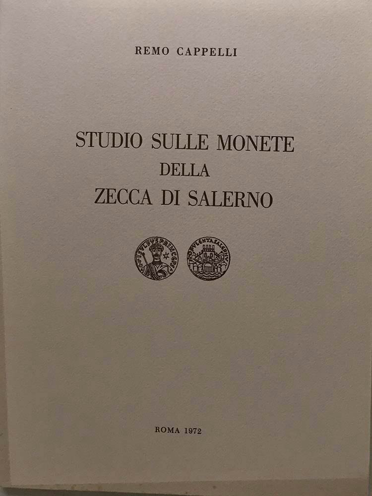 Cappelli R., Studio Sulle Monete della Zecca di Salerno. Roma 1972. Brossura editoriale, pp.85, tavv. 6 e catalogo delle monete con grado di rarita' (The ultimate reference for Medieval Coinage of Salerno (Campania), from Siconolf