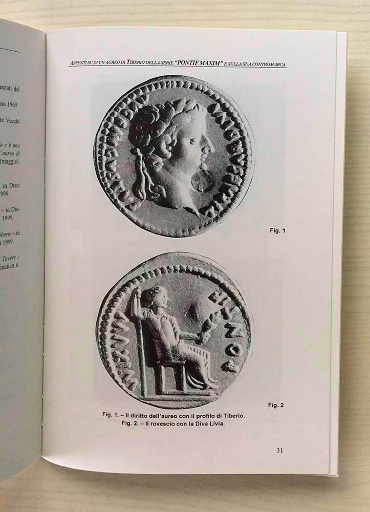 Circolo Numismatico “Mario Rasile” Quaderno di studi XLIII, Formia, Gennaio-Febbraio 2001. Appunti su di un Aureo di Tiberio della serie “ Pontif Maxim” e sulla sua contromarca. Brossura ed., pp. 37, illustrazioni n/t. Nuovo.