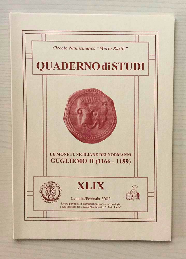 Circolo Numismatico “Mario Rasile” Quaderno di studi XLIX, Formia, Gennaio-Febbraio 2002. Le Monete Siciliane dei Normanni, Guglielmo II ( 1166-1189). Brossura ed., pp. 39, numerose illustrazioni n/t. Nuovo