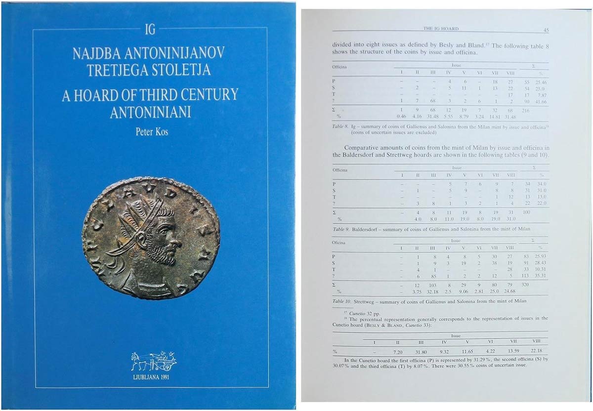 KOS Peter. A Hoard of Third Century Antoniniani. Ljubljana 1991. Hardcover, pp. 99, pl. 50