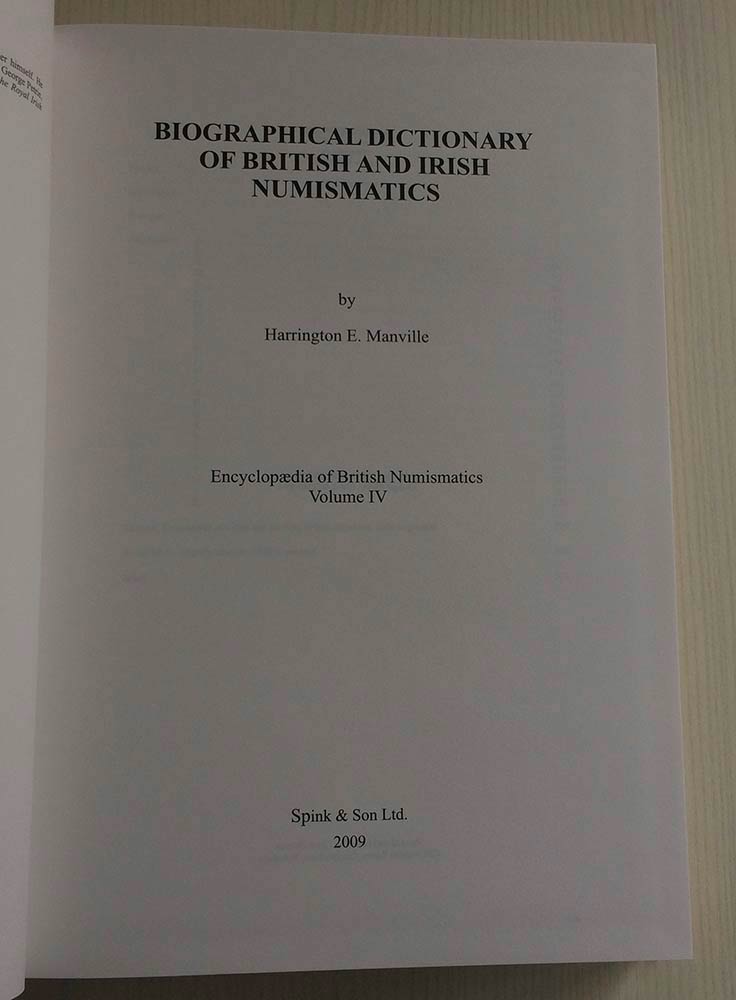 Manville H.E. Biographical Dictionary of British and Irish Numismatics. London Spink & Son, 2009. Tela ed. pp 358. Come nuovo.