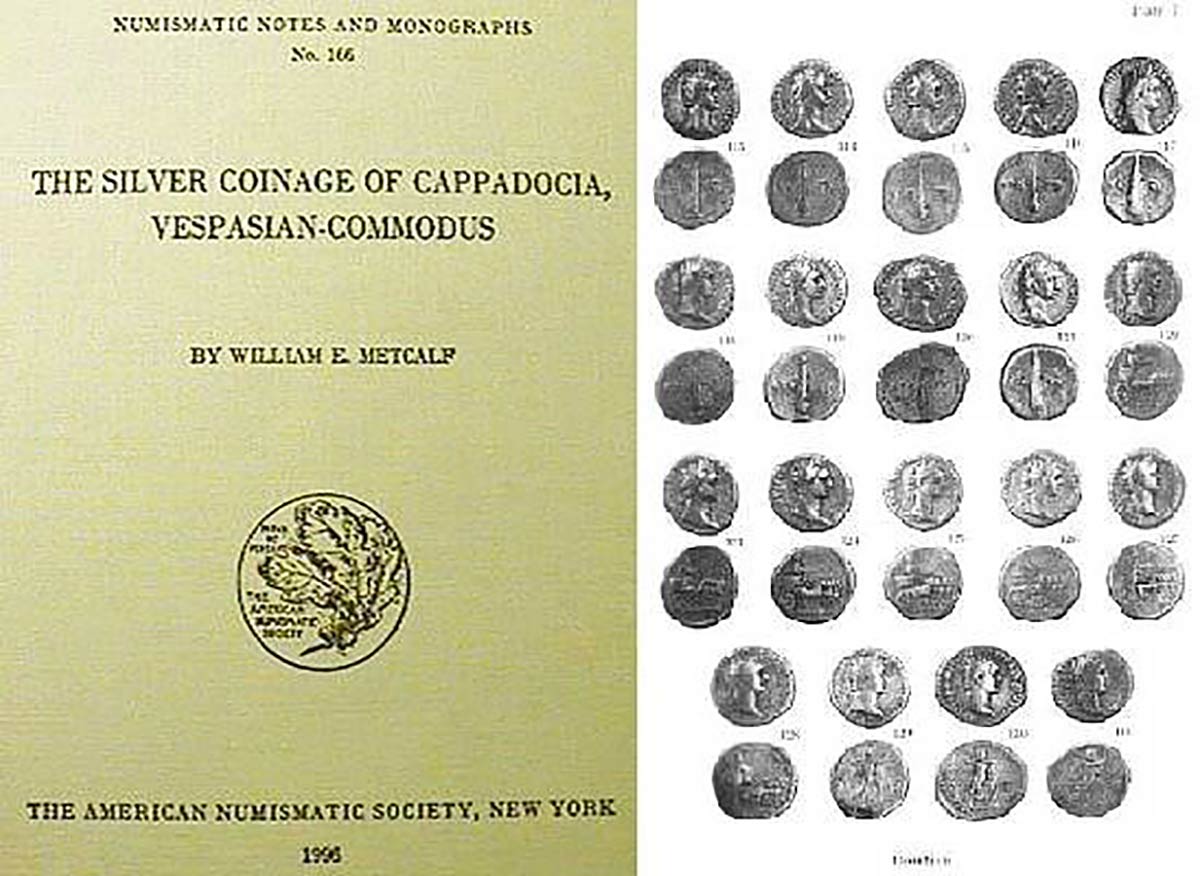 METCALF W. E. - The Silver Coinage of Cappadocia, Vespasian-Commodus. New York ,1996, 173 pp., 54 pls. Hardback, cloth. A hoard of over 900 silver coins was discovered in Cappadocia, probably in Caesarea, in 1983. A catalogue of t