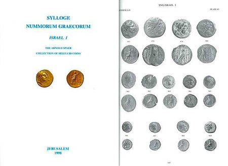Sylloge Nummorum Greacorum Israel I – The Arnold Spaer Collection of Seleucid Coins. Arthur Houghton and Arnold Spaer, with the assistance of Catharine Lorber. Jerusalem 1998. Italo Vecchi Ltd, London. Copertina rigida con sovraccoperta, 389pp., 2919 monete illustrate in 189 tavole B/N. Come nuovo "