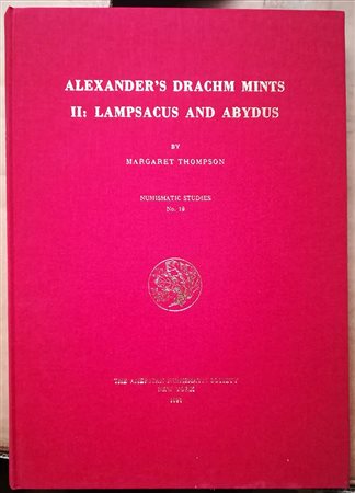THOMPSON M. - 4. ALEXANDER'S DRACHM MINTS II: LAMPSACUS AND ABYDUS - Numismatic Studies No. 19, New York, American Numismatic Society, 1991. 77 pages of text plus 34 exceptional plates. Red cloth, New copy. The second of two books