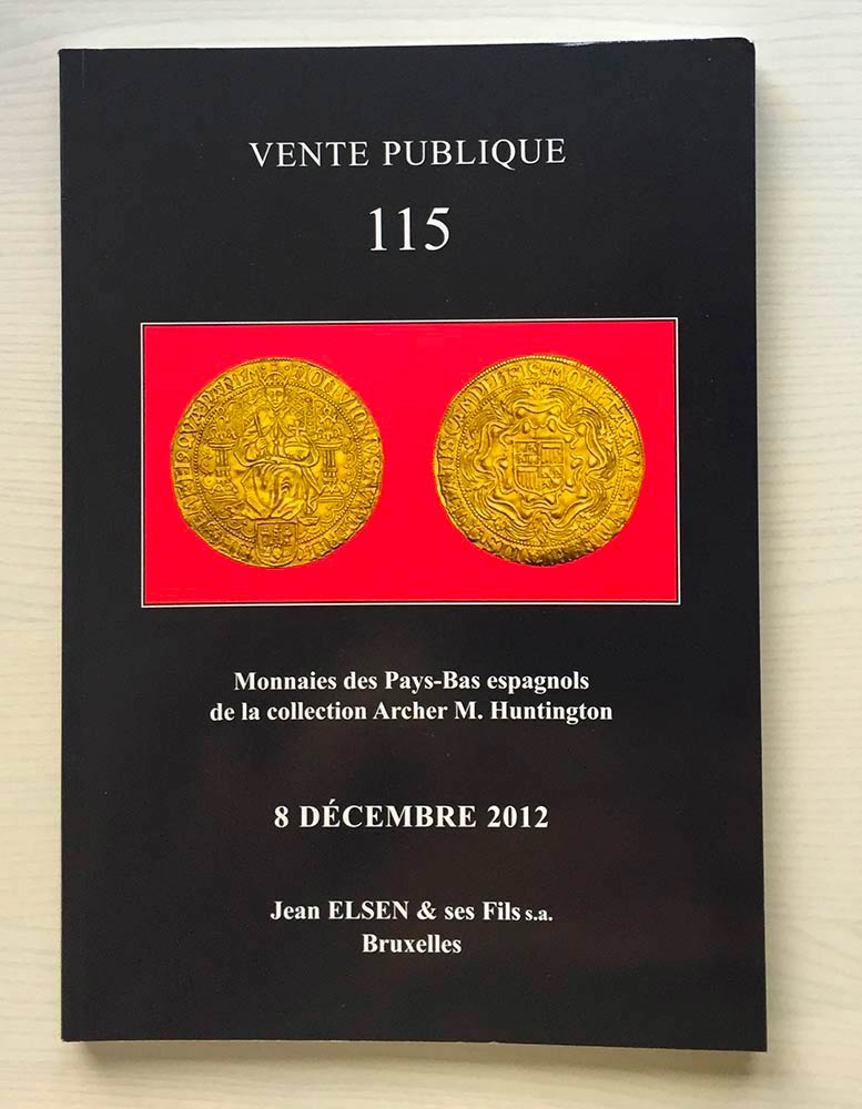Elsen J. Vente Publique 115 Monnaies des Pays-Bas Espagnols de la Collection Archer M. Huntington. Bruxelles 08 Decembre 2012. Brossura ed. pp. 243, lotti 1587, tavv. A colori. Ottimo stato.