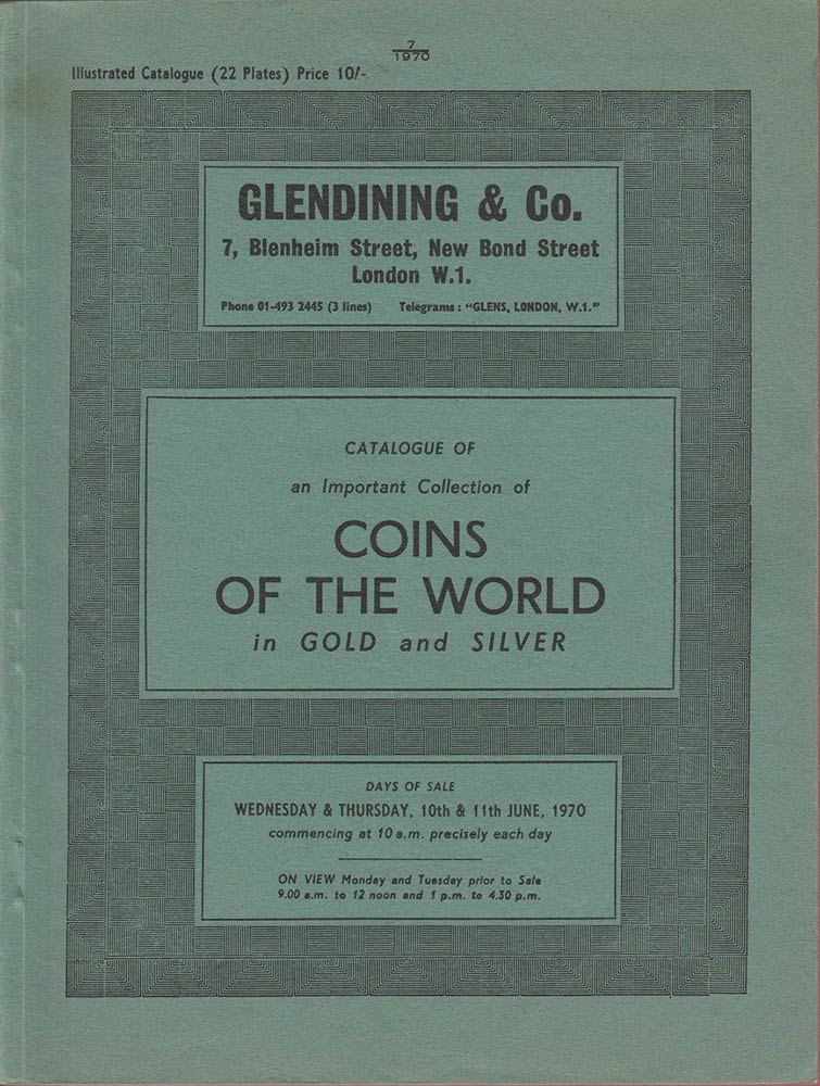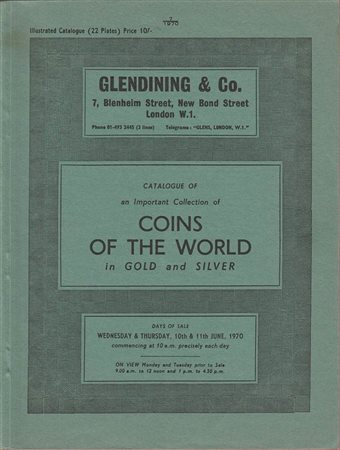 GLENDINING & Co. Auction London 10-11/6/1970. Catalogue of an important Collection of Coins of the World in Gold and Silver. Editorial binding, pp. 60, lotti 950, tavv. 22 prezzi di aggiudicazione manoscritti