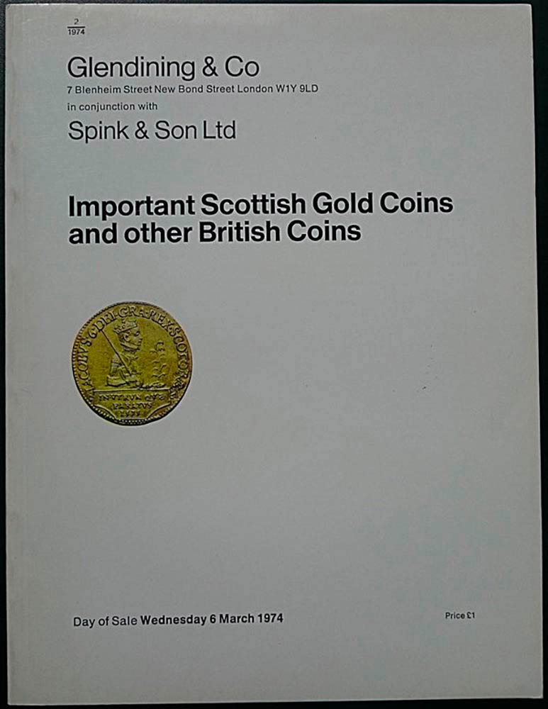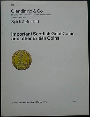 Glendining & Co. and Spink & Son, Important Scottish Gold Coins and other British Coins. London, 6 March 1974. Brossura editoriale, 338 lotti, foto B/N. Ottime condizioni, include realizzi