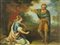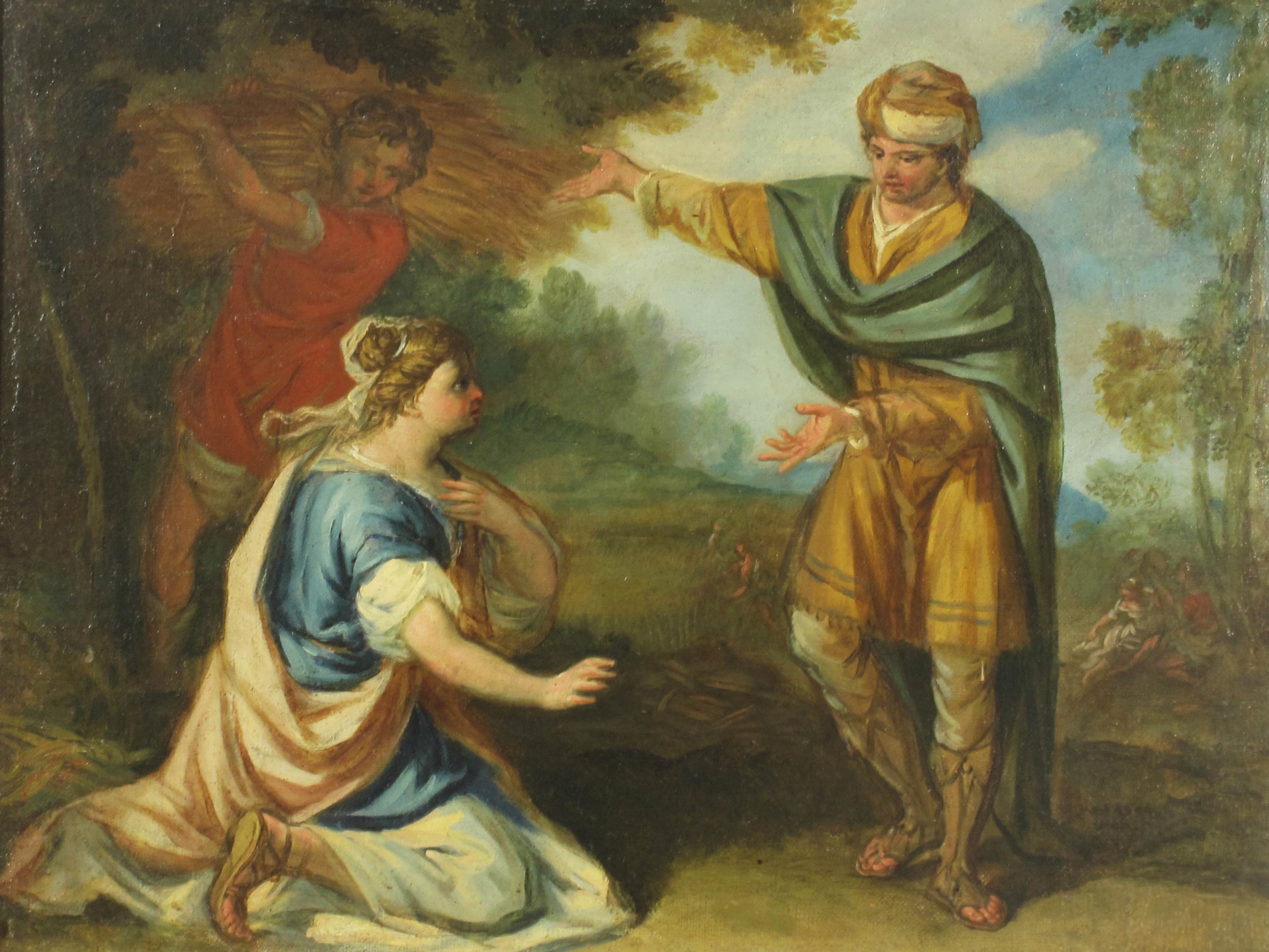 Coppia di dipinti scuola romana (XVIII secolo) Ruth e Boaz/Dio parla a Mosè...