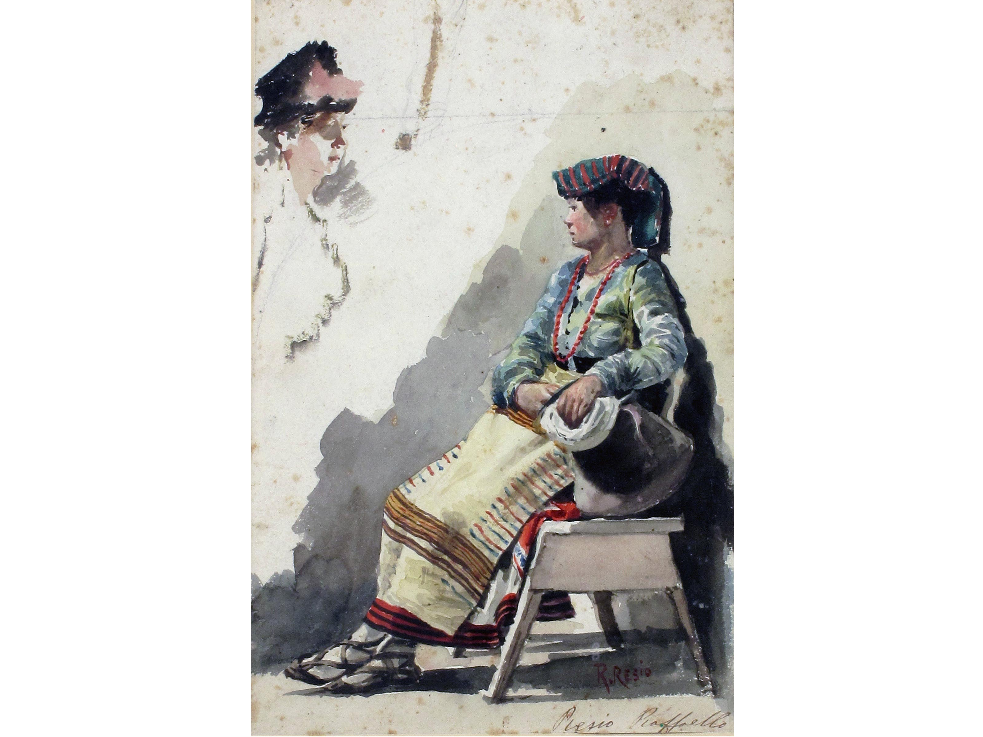 Raffaello Resio (Genova 1855-Savona 1927) Donna in preghiera Acquarello su...