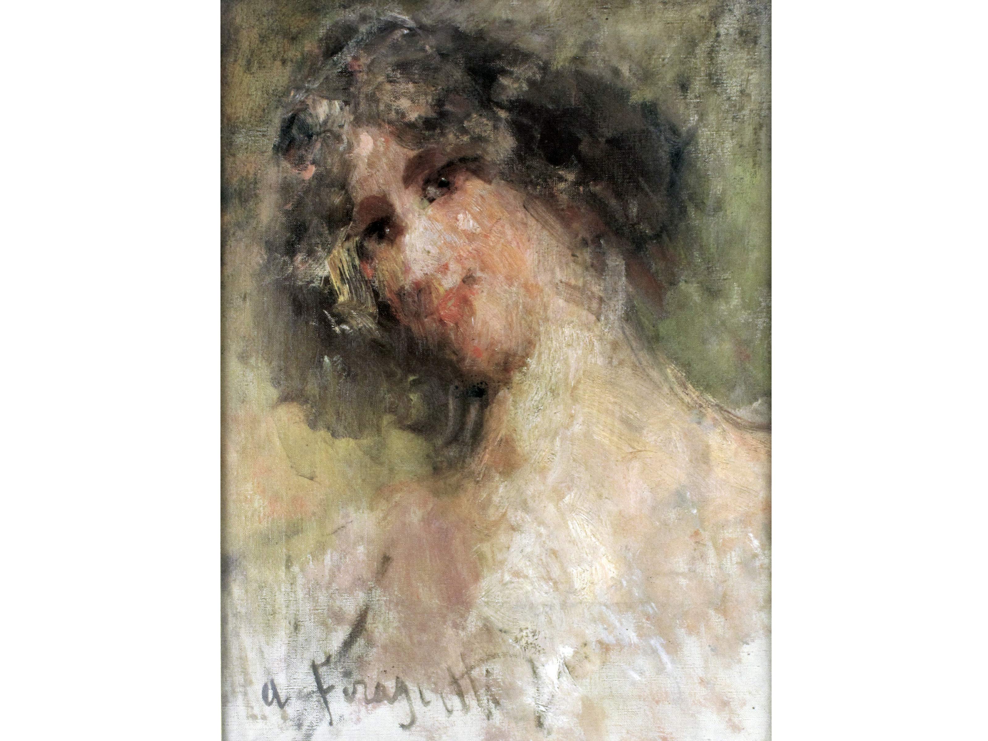 Adolfo Ferraguti Visconti (Pura 1850-Milano 1924) Giovane donna Olio su tela Firmato Misure 48x35 cm
