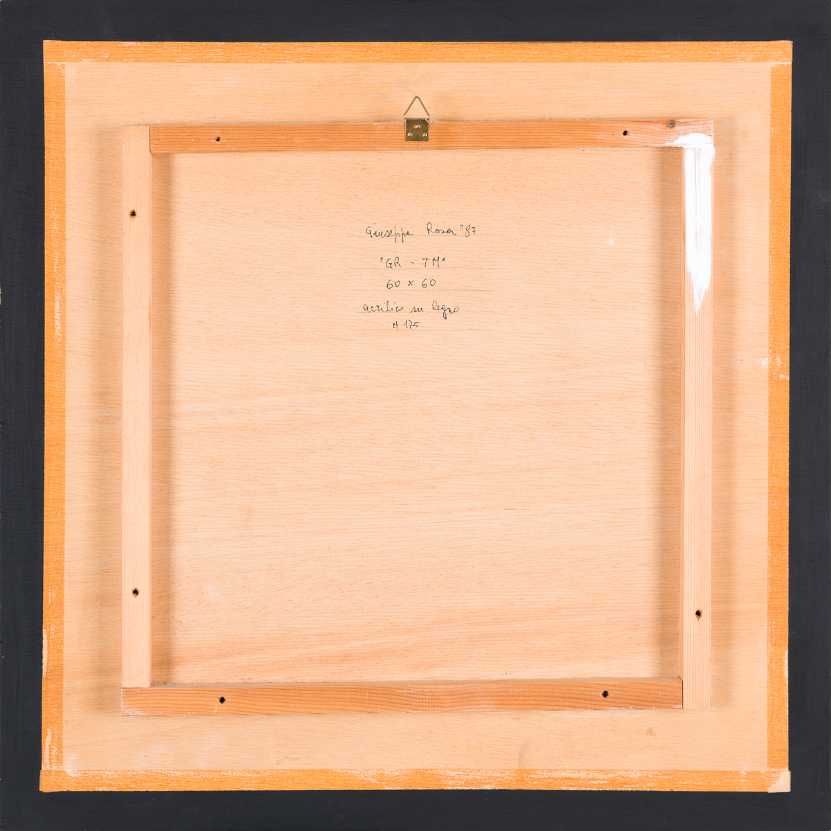 Firma, titolo, datazione, misure, tecnica e numero di repertorio (N.175) al retro