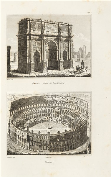 [ITALIA] - L'Italia, la Sicilia, le isole Eolie, l'isola d'Elba, la Sardegna, Malta, l'isola di Calipso, ecc. secondo le ispirazioni, le indagini, i lavori de' signori il visconte di Chateaubriand, Lamartine, Raoul-Rochette, il conte di Forbin, Piranesi, Mazara. Turin: Giuseppe Pomba, 1834-37.