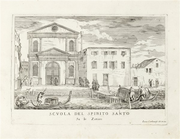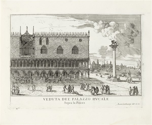 Splendida copia della prima edizione con 101 tavole, tutte in prima tiratura tranne le n. 82, 86 e 98 (in seconda tiratura numerate in basso a destra) e con aggiunta la tavola, apposta dopo la trentottesima, con la veduta della Scuola dello Spirito Santo difficile a trovarsi poiché non verrà poi inserita nelle successive edizioni. La prima edizione era talvolta composta da sole 100 tavole, ma è qui presente anche la veduta di Palazzo Vendramino alla Guidecca (sic) come ultima tavola. La celebre opera del Carlevariis illustra la Venezia del primo Settecento attraverso vedute dei principali monumenti e con molte tavole dedicate a Piazza San Marco. Cf. Berlin Kat. 2682 (100 plates); Succi, Da Carlevarijs ai Tiepolo, pp.112 ff.