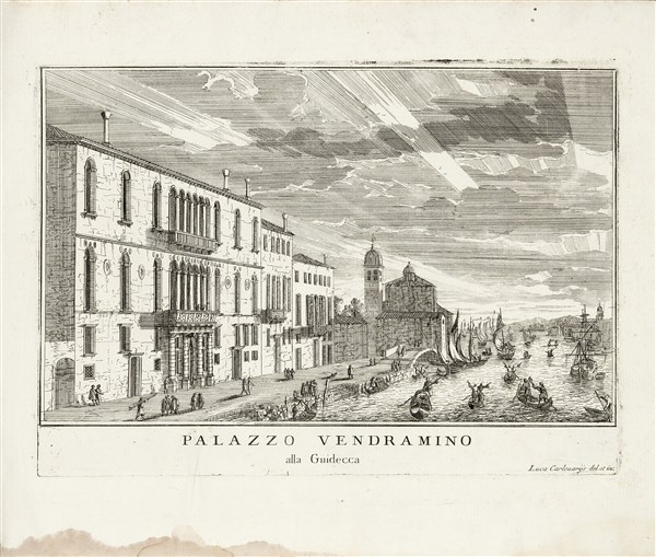 Oblong folio (290 x 405mm). Engraved title, dedication to Doge Luigi Mocenigo dated 27 May 1703, and 101 unnumbered etched views by Carlevaris, between plates 38 and 39 there is an extra plate with slightly smaller measurments rappresenting the Scuola della Spirito Santo su le Zatere, all plates are in first state but plates 82, 86 and 98 which are in second state an numbered within the plate at bottom right corner (ca. 10 plates at center have a marginal waterstaing and few plates at end have a smaller but darker marginal waterstain). Contemporary speckled calf, speckled edges (rebacked with modern spine). Provenance: William Clavering-Cowper, 2nd Earl Cowper (1709-1764, armorial bookplate) - A. J. Kant (bookplate).