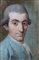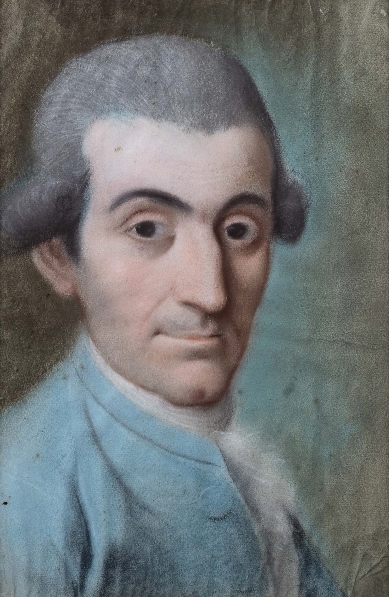 Scuola veneta, secolo XVIII - Ritratto di uomo con parrucca grigia e giacca celeste, a mezzo busto