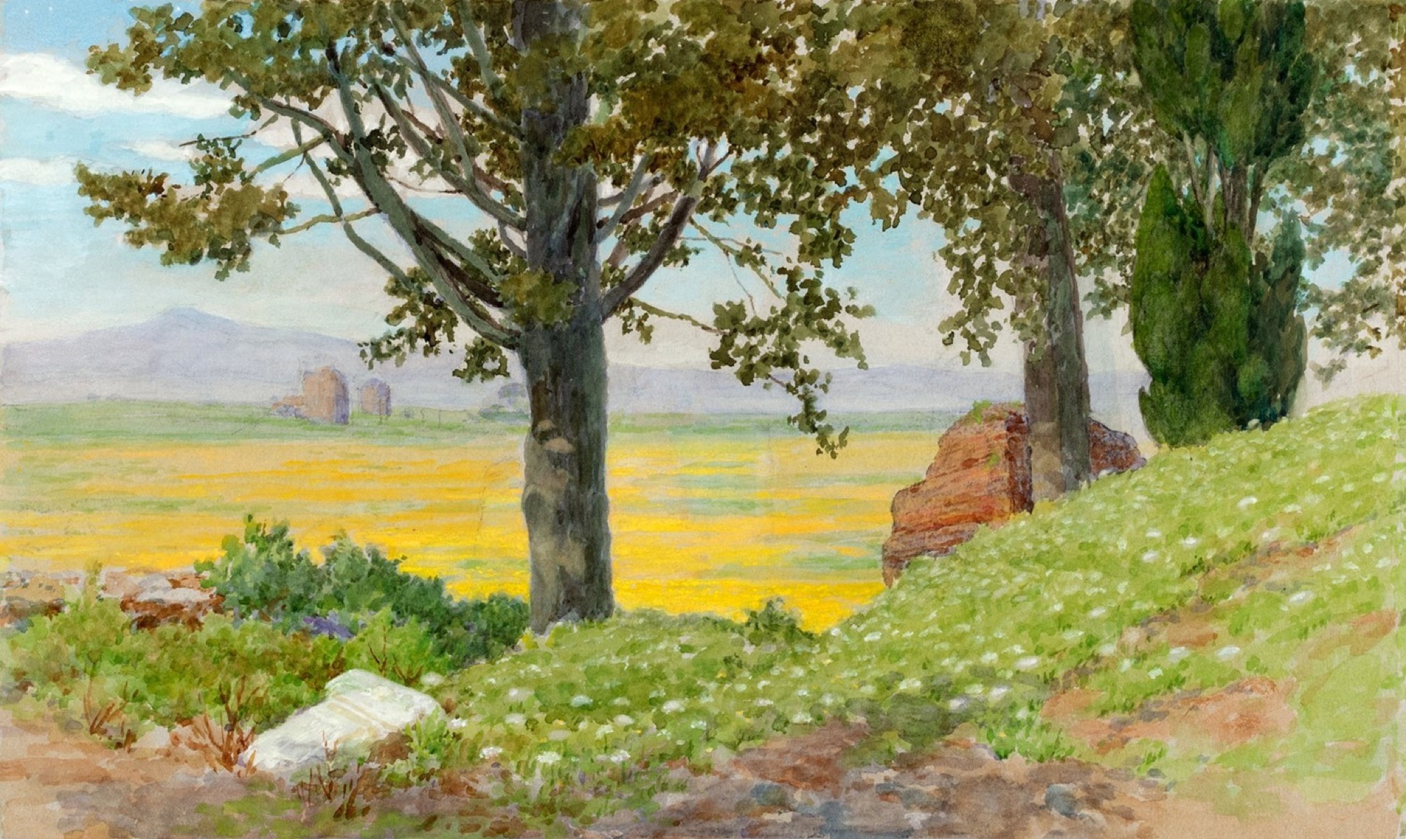 b) Campagna Romana con ruderi e il Monte Cavo