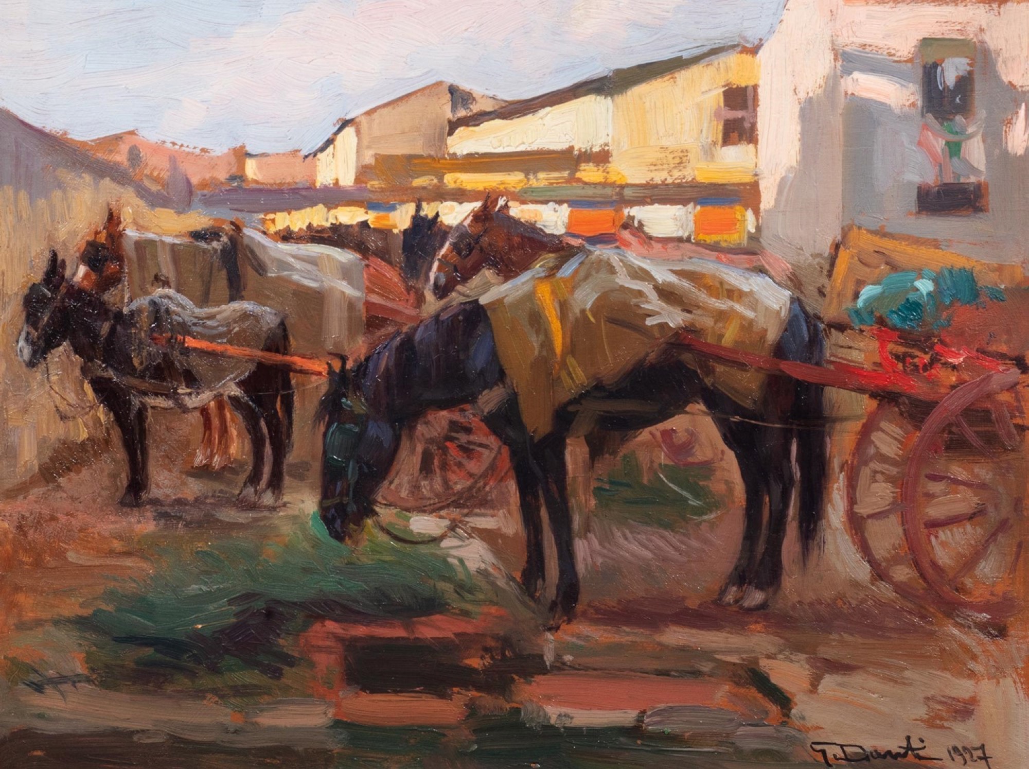 Gino Danti (Firenze 1881-1968) - La sosta dei carretti, 1927