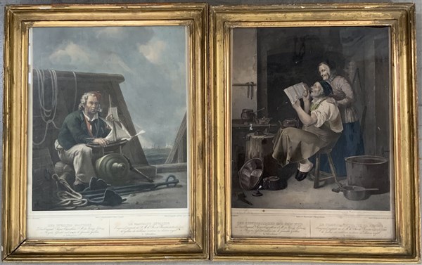 Lot 26 | Due acquatinte del secolo XIX raffiguranti marinaio e calderaio (cm 41x31), in